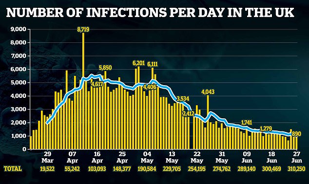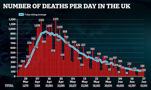 It comes as Britain today announced 100 more coronavirus deaths, in a record-low Saturday total that will cool fears about the latest lockdown-loosening measures.