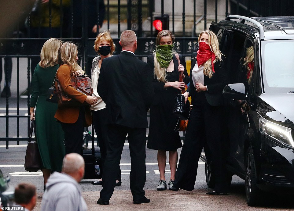 Amber Heard (left, arriving at the High Court; right, leaving the High Court) took the photo at her LA home in 2013 before the couple had another blazing row about his drug and alcohol use