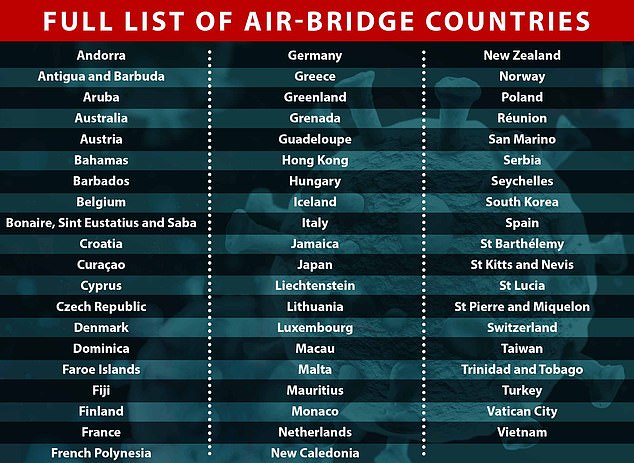 From Friday passengers entering England from many countries will not have to self-isolate following the establishment of 'air bridges' with areas with an acceptable level of risk.