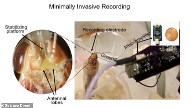 The team implanted electrodes into the creature's antennal lobe, a region in the brain that receives input from its sense of smell, allowing them to see what scents it picks up