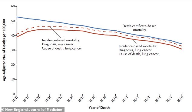 'Clearly after so many years of educating Americans about the dangers of tobacco and smoking, smoking rates are declining and that is definitely impacting lung cancer incidence and mortality. But if it were smoking that were to make this sudden fall in death rates, we would have seen it for [other subtypes of lung cancer] as well.'
