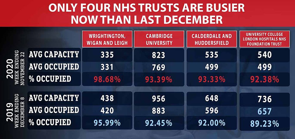 But NHS officials hit back at the claims, with one senior executive saying the national occupancy data was 'not a good guide to how pressured hospitals are'.
