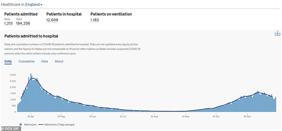 Government figures show there were 1,230 new coronavirus patients needing NHS treatment every day in England during the week ending November 29, on average.