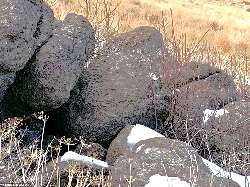 The US Fish and Wildlife Service posted a peaceful-looking image of boulders in the grass Tuesday on Facebook and captioned it: 'Where's Waldo: Mountain lion in Washoe County, Nevada edition.'