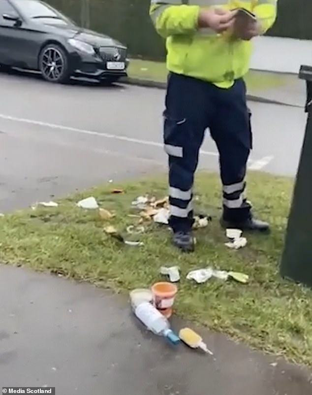 The unnamed woman was left fuming after the council worker arrived at her property in Burdiehouse, Edinburgh, and emptied the contents of her general waste bin on to a grass verge in front of her home