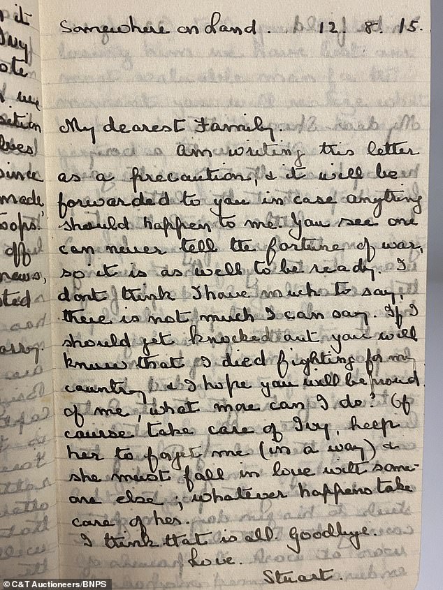 A C&T Auctions spokesperson said: 'The "memorial" notebook contains transcribed letters to his family from Gallipoli in 1915.