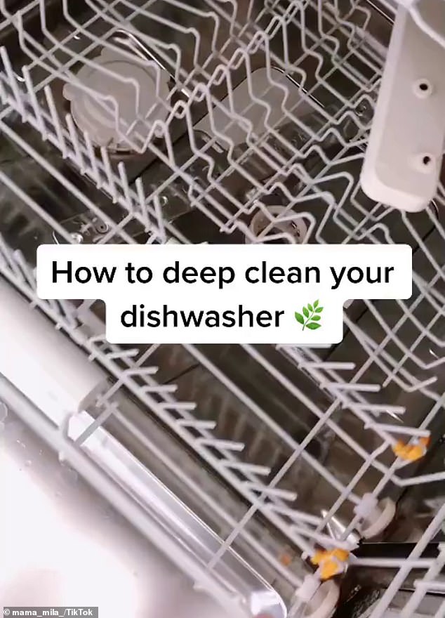 An organised mum-of-two has shared her secret to a super clean dishwasher, and how she gets her dishes sparkling every time (the dishwasher pictured)To start your dishwasher deep clean, you first of all need to remove the filter, and empty, soak and wash it in your sink with dishwashing liquid.