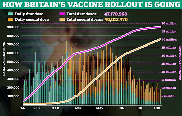 It comes after data revealed more than 70 per cent of adults aged 18 to 29 in England have received a first dose of a Covid vaccine.