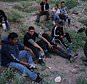 A group of migrants lie down and sit on the beach after arriving on Dungeness beach on Wednesday afternoon