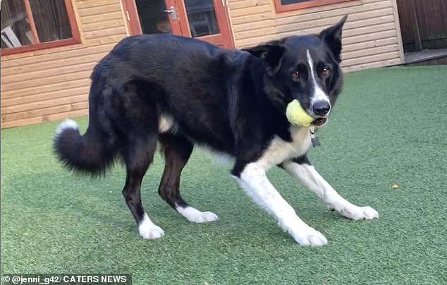 Toby the border collie, pictured, loves playing football in the back garden of his owner Dave Gilbert's Leicestershire home