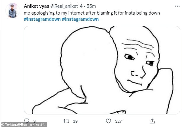 One Twitter user said: 'I really thought I’m having issues with my internet connection. #instagramdown.'
