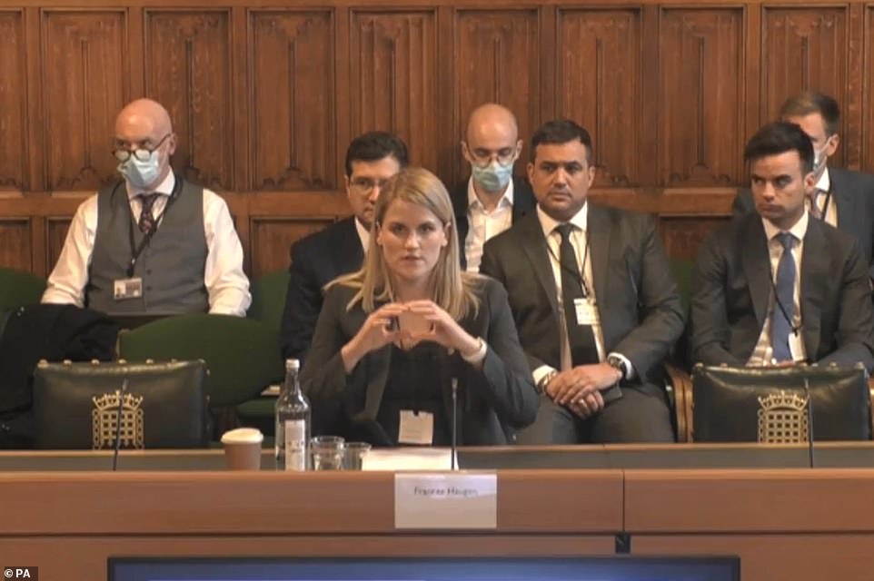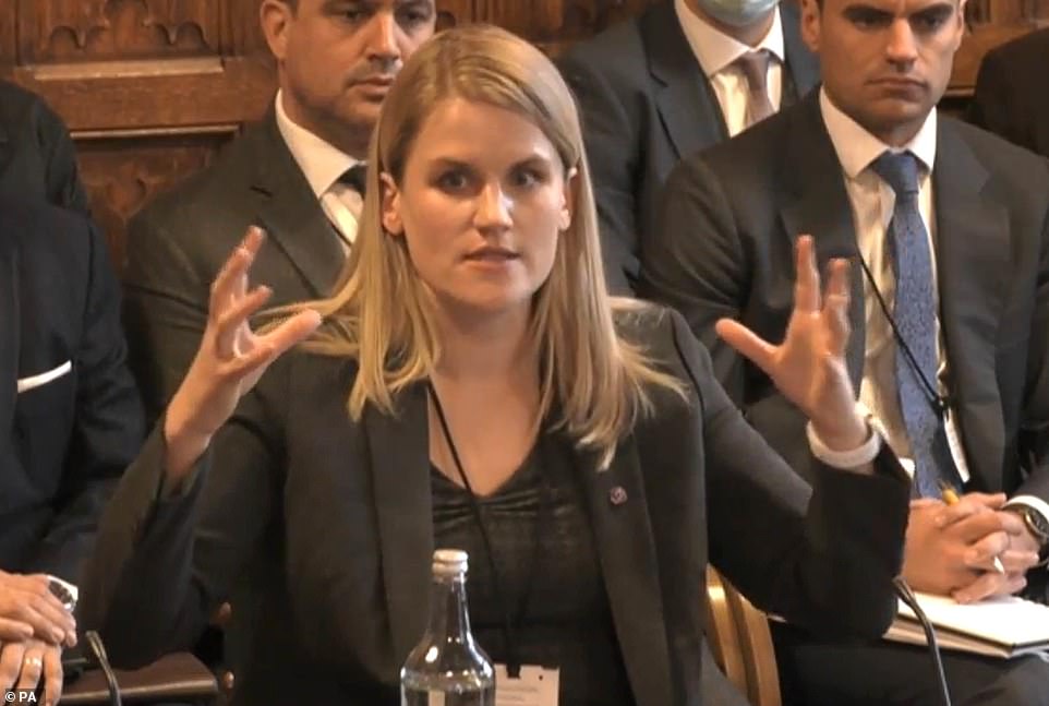 Ms Haugen told the parliamentary select committee that the social media giant was 'unquestionably' making online hate worse.