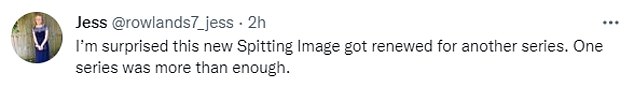 One user took a swipe at comedian Matt Forde, a writer on the show and voice to some of the puppets, and said: 'Professional comedy people are somehow getting paid to make this embarrassing shambles.