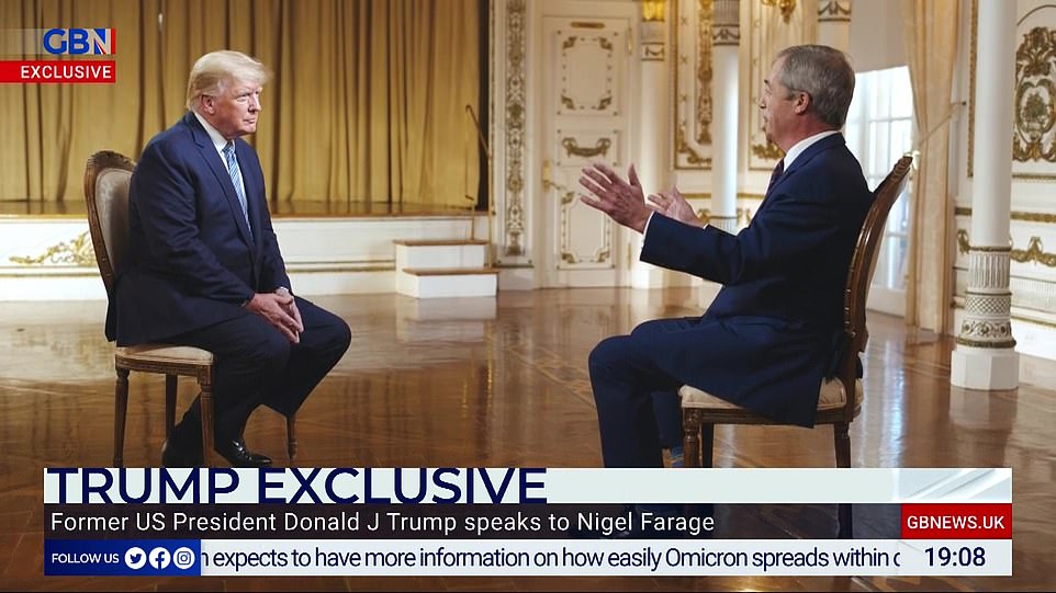 Mr Trump was speaking to ex-UKIP leader Nigel Farage during the interview on GB News tonight