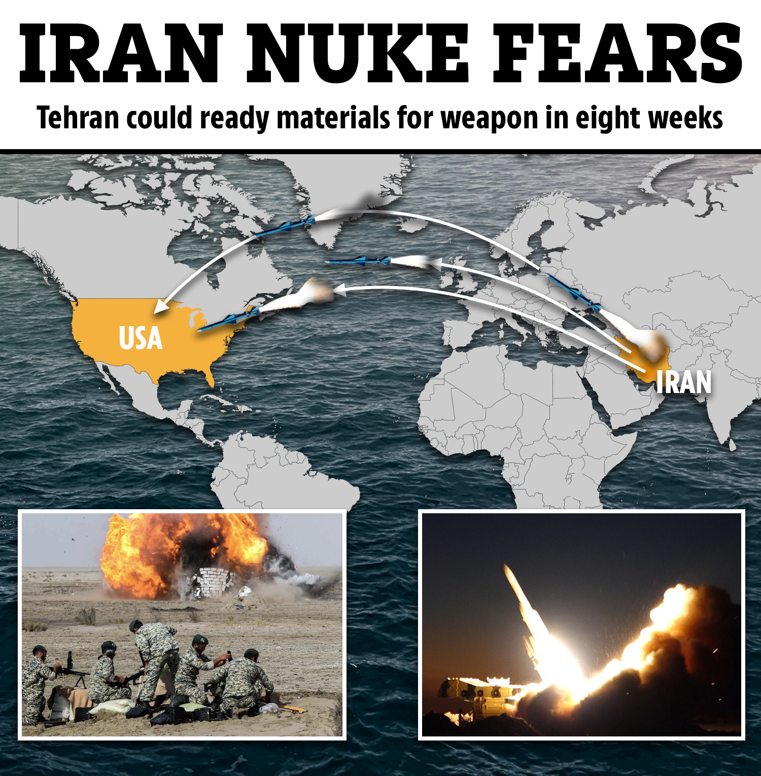 IRAN can ready the materials for a nuclear weapon in just eight weeks and Washington was just minutes away from a war with Tehran in 2019, an expert claims.