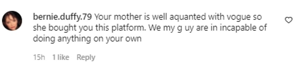 Users penned: 'Your mother is well aquanted with vogue so she bought you this platform. We my g uy are in incapable of doing anything on your own';