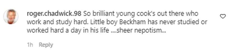 'So brilliant young cook's out there who work and study hard. Little boy Beckham has never studied or worked hard a day in his life ....sheer nepotism...'