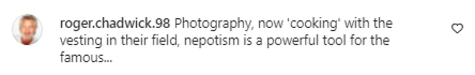'So why don't you just go to culinary school then and learn the craft and all this social media stuff comes after once you're fully qualified? This social media cooking thing will only last for a few years. Take some advice n stop expecting things on a plate just cos of ur surname. Ppl will like u more if they've seen uve worked 4 something. Instead of just riding off ur surname n bank balance';