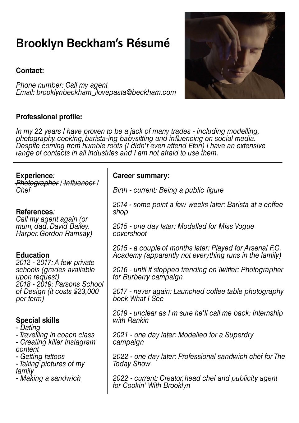 Still not made your mind up? Brooklyn Beckham ditched his photography hobby and decided to rebrand as a chef by launching his own cookery show - despite having no formal cooking experience