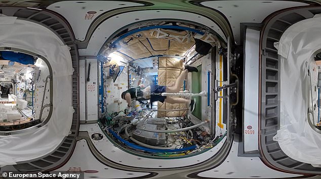 In the clip, Maurer can be seen floating around before grabbing hold of a handrail to steady himself and get in the correct orientation.