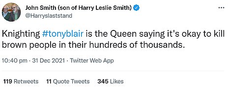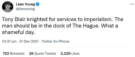 The decision to make Tony Blair a Sir was met with anger by many on social media, as the former Prime Minister was branded a 'war criminal'