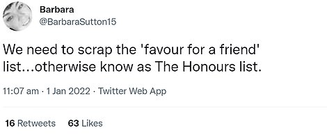 'This year the Honours List rightly recognises those whose efforts have helped us deliver world-leading testing and vaccination programmes, and I am deeply grateful for their hard work.'
