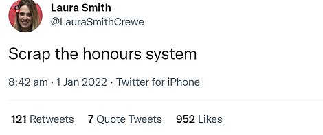 Elsewhere, Melanie Brown, 46, of the Spice Girls, better known as Mel B, has been made an MBE for her work with domestic violence charity Women's Aid.
